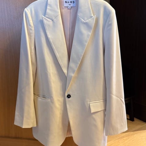 Helt ny oversized blazer fra NA-KD i en fin brunfarge. Består av 69% polyester, 29% viskose og 2% elastan. Størrelse 38. De tre første bildene er lånt fra nettet. Nypris: 959,-