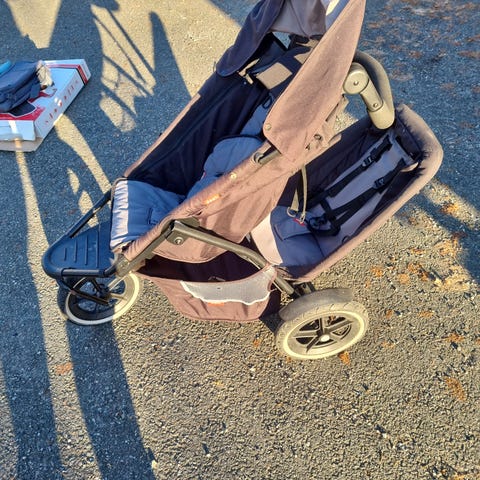 Barnevogn med plass til to barn.
