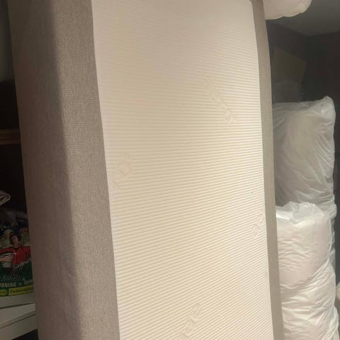 Rammemadrass til salgs. Det er et lite flyttemerke på et av hjørnen.