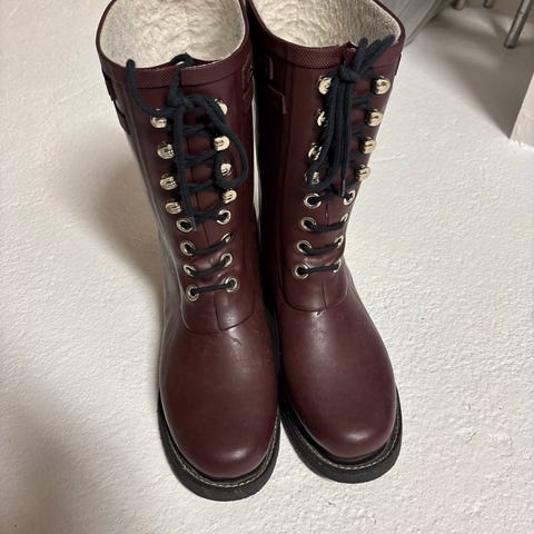 Ilse Jacobsen regnstøvler i størrelse 36, farge svart. Støvlene er designet for å beskytte mot vått vær og er laget i vanntett materiale. Egnet for bruk i regnvær og fuktige forhold. Er store i størrelsen. Kan sendes mot porto