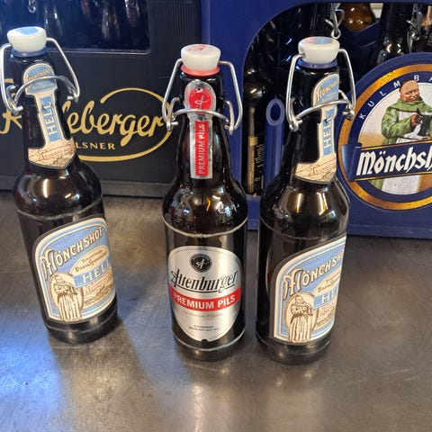 Selger 57 stk. Franske 0,33 l ølflasker for 2,- per stk. 114,- kr.