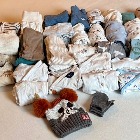 Barneklær i størrelse 62. Settet inkluderer ulike plag.