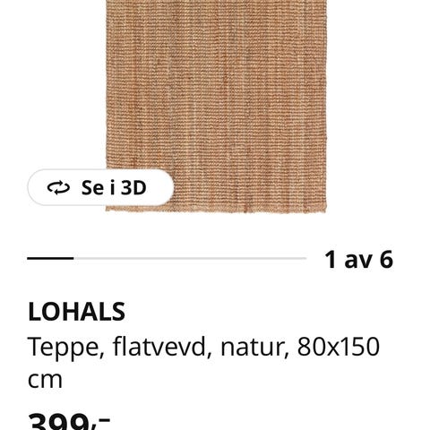 IKEA RAKLEV gulvteppe selges. Mål 70x160.