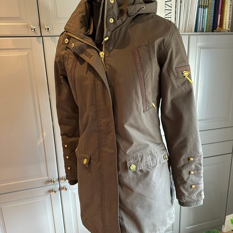 Svart flott jakke fra SØS JENSEN. Jakken er fôret, vindtett og vanntett. Hetten kan tas av. Ikke røk og dyr i hjemmet.