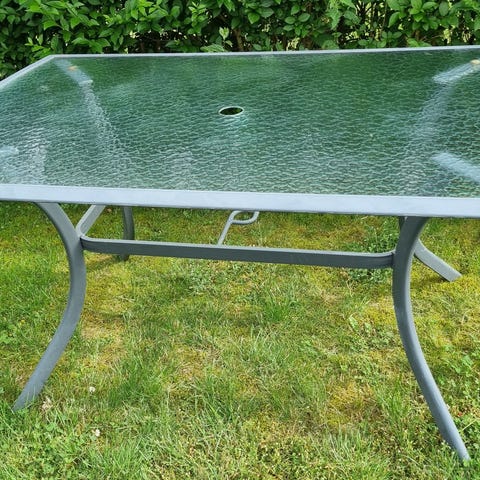 Bordet er 1 m. i diameter. Blir kjørt på dynga på mandag.