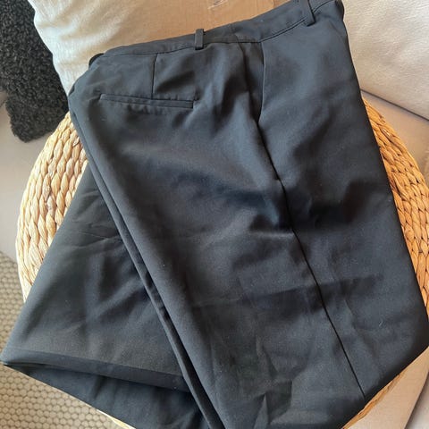 Fin, nesten ubrukt bukse fra Bik Bok. Sort stretch. Måler 38 cm fra kant til kant rundt midjen. 90 cm fra midje til benkant.