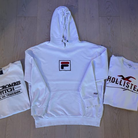 Levi’s, Fila, Abercrombie &Fitch,2 x Hollister, Puma og Nike. Pent brukt, passer de som liker omkrets 120-130 cm, 900 kr+ porto. Billigere porto til 15/2-26