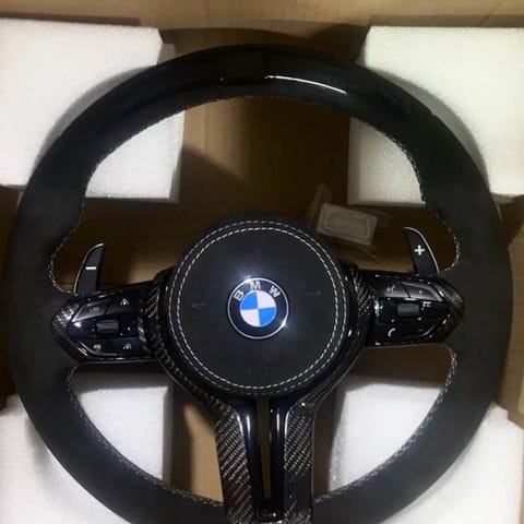 Selger et custom BMW M5 ratt trukket i Alcantara, kjøpt fra LZ Customs. Rattet har både rattvarme og vibrasjonsfunksjon, og gir et eksklusivt og sportslig løft til interiøret.
