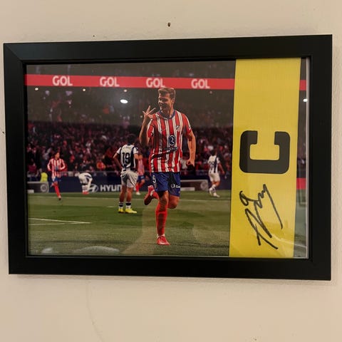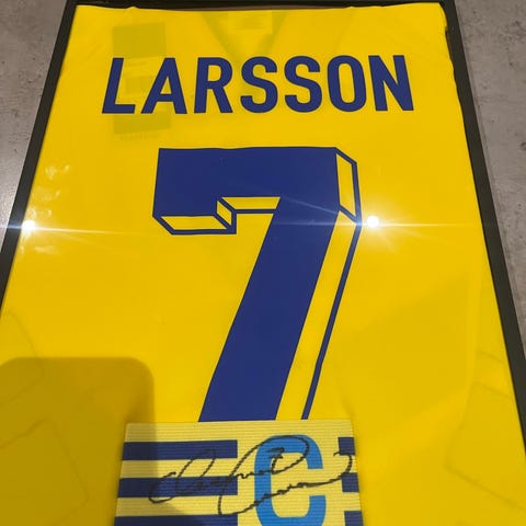 Michael Laudrup, Laudrup signert, signert kapteinsbind, Danmark fotball, dansk landslag, DBU, fotballsignatur, autograf fotball, signed armband, AME memorabilia, fotballsamler, innrammet drakt, retro fotball
