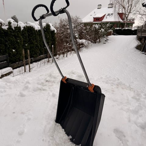 Allroundspade / Snøskuffe med treskaft og plastblad rød