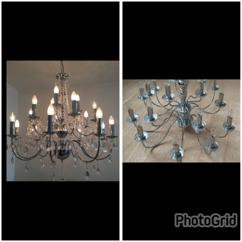 3 krystalllysekroner og 1 messinglysekrone (1 krystall er reparert). Alle fungerer som de skal. Må hentes. 2000 for alt samlet.