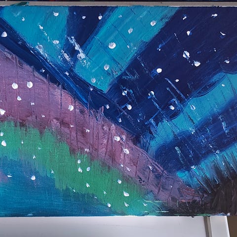 Akryl Maleri - "Flammeregn på åpent hav"