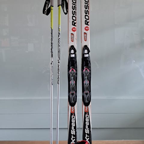 Rossignol Classic CL166 R Skin Race langrennsski med racing bindinger. Felleski. Medfølgende Swix staver 115cm . Sko er Alpina ncl 2.0 racing classic i str 35