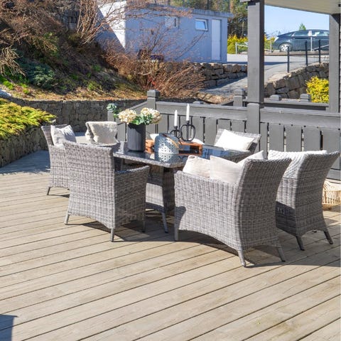 Rotting grå loungegruppe med tilhørende glassbord selges