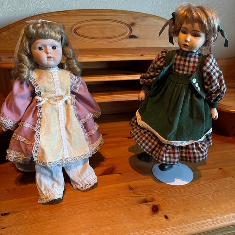 3 stk porselendukker. Ikke brukt som leke , kun vært til pynt.