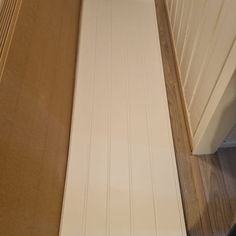 To hvite paneler uten oppgitt merke eller modell. Panelene har en enkel, rektangulær form og er laget av ukjent materiale. De kan brukes til ulike formål som innredning eller konstruksjon.