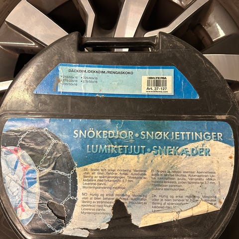 Meget enkelt å legge på og ta av. Tilsvarende nye i dag koster rundt 3000 kr med denne størrelsen