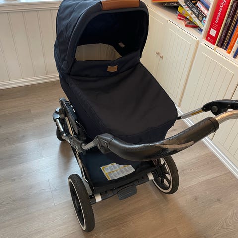Emmaljunga NXT90 Outdoor Ocean barnevogn selges, komplett med liggedel i samme farge. Vognen er kjent for høy kvalitet, god fjæring og svært god komfort – perfekt til både by og tur.