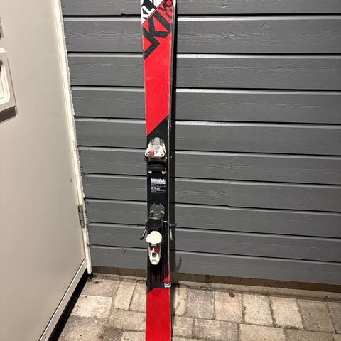 Völkl RTM alpinski med en lengde på 120 cm. Skiene har integrerte bindinger