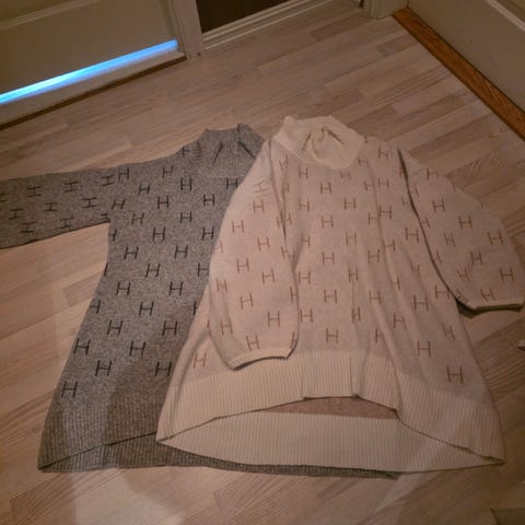 Pent brukt grå Hést fam genser, lang modell i størrelse 2. Genseren er nesten ikke brukt, og har ingen flekker. Selges fordi den ikke blir brukt :)