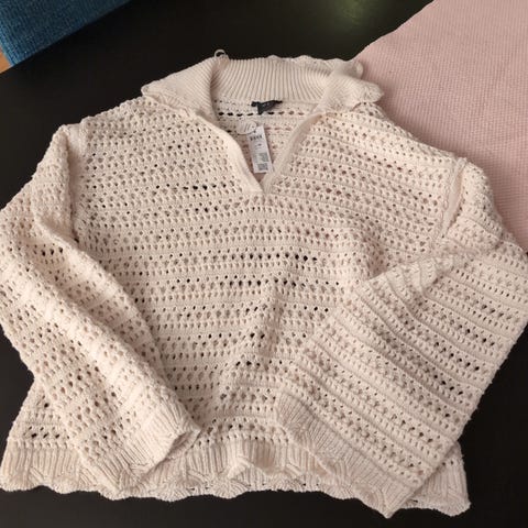 Lindex genser i blå farge, størrelse M for dame. Laget av lyocell materiale. Genseren har V-hals og lange ermer.