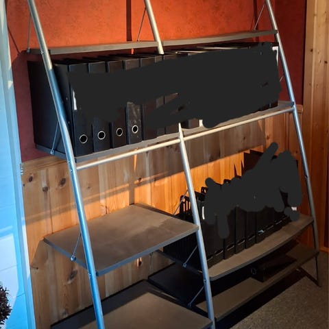Pent brukt metallhylle. Litt kakk i treverket, men veldig lite så de syns nesten ikke.
