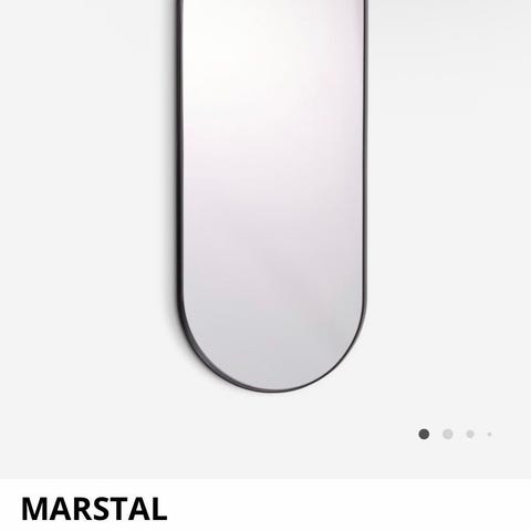 Jysk Marstal speil med diameter på 70 cm. Speilet har en gulldekorert ramme og rund form.