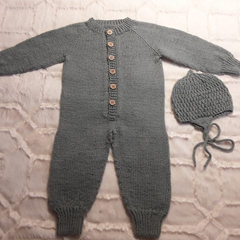 Ny hjemmestrikket ull romper i str 62( 2 til 4 mnd)