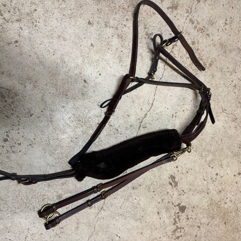 Hodelag med pus på nesereim og nesestykke. Laget i svart lær med justerbare remmer. Passer til hest, str full