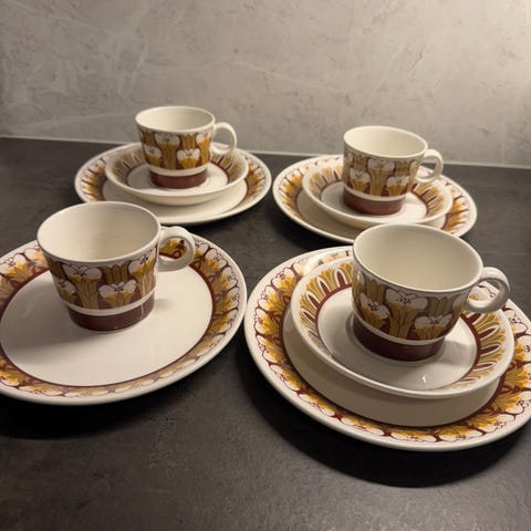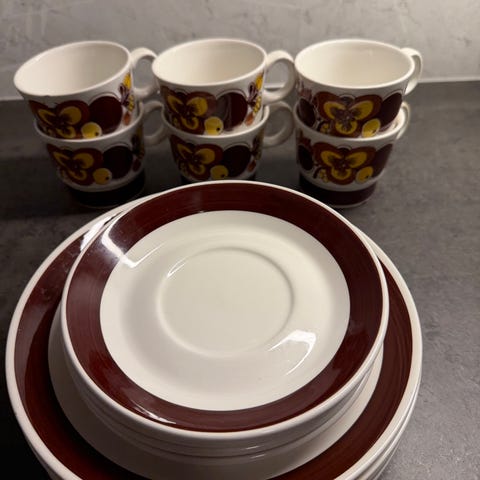 StavangerFlint tante og onkel kopp skål. Tante koppen og skålen er litt mindre enn onkel. Tante koppen har et lite skår. Se bilder 150kr samlet