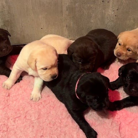 Vakkert Labrador valper kommet til verden den 08. 01. 2026 . Alle valpene er rolige og veldig koselige. Far til valpene er revrød farge og moren mørk gule.