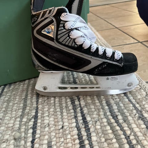 CCM Ishockeyskøyter for barn i størrelse 35. Skøytene er svarte og beregnet for ishockeybruk.