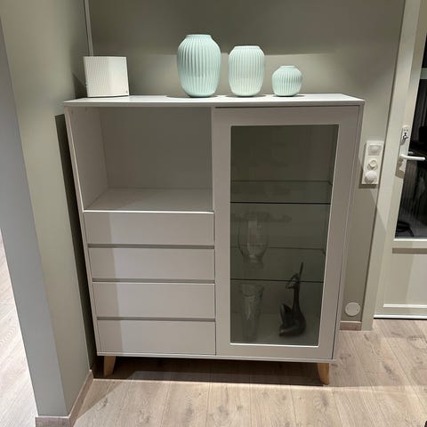 Urban living skap i hvit høyglans. Stilrent og klassisk, mye plass. Nypris kr. 14 000