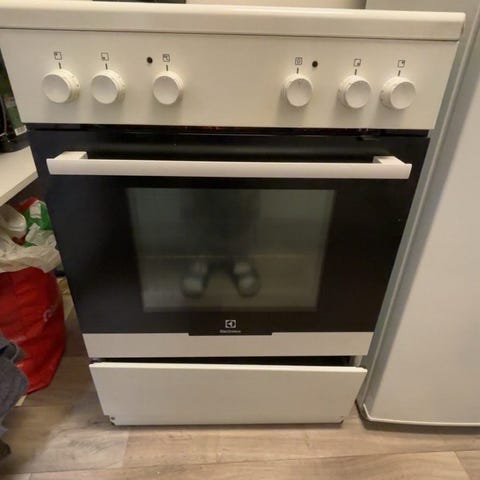 Komfyren fungerer 100 % som den skal – både alle kokeplater (induksjon), ovn med varmluft/over- undervarme/grill, timer og lys i ovnen.