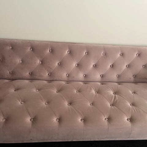 To velholdte sofaer i blått stoff. Det følger også med to ekstra trekk som er veldig lite brukt: rosa velur til 3seter (218cm) og sjøgrønn velur til 4seteren (302cm) hvis man har lyst til å variere farge og uttrykk