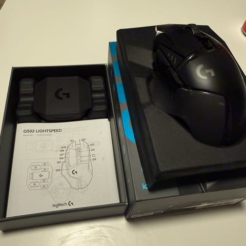 Logitech G Pro gamingmus med kablet tilkobling og ergonomisk design. Hodetelefoner med over-ear design, justerbar hodebøyle og lydisolerende egenskaper, egnet for gaming.