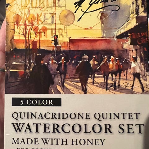 Winsor & Newton akvarellmaling sett med flere farger. Inneholder et utvalg av akvarellfarger i en bærbar eske med lokk. Egnet for kunstnerisk bruk og maling.