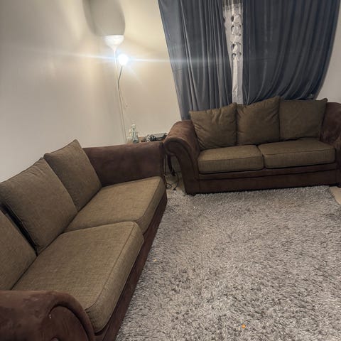 Ukjent Sofa- og Lenestolsett i beige og brun