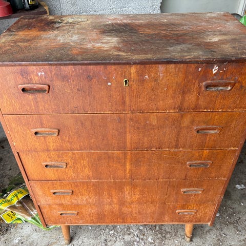 Et lite nag på kanten av den øverste skuffen ellers hel og fin med noen bruksmerker
