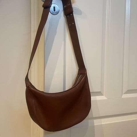 Vesken er kun brukt 1 gang, men skinnet er veldig mykt og får naturlig litt “slouch”/myk fasong når den ikke er fylt (se bilder). Ellers i veldig fin stand.