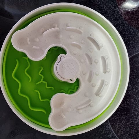 Flott slowfeeder i mykt materiale med veldig kult design! Har en sugekopp bak slik den kan stå fast til underlaget.