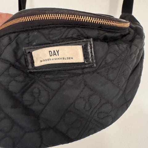 & Other Stories dameveske laget av andre materialer. Vesken har en strukturert overflate med en brunfarge og inkluderer en dekorativ sommerfuglanheng. Den har en bred, mønstret skulderrem og en ekstra avtakbar rem for variasjon i bruk.