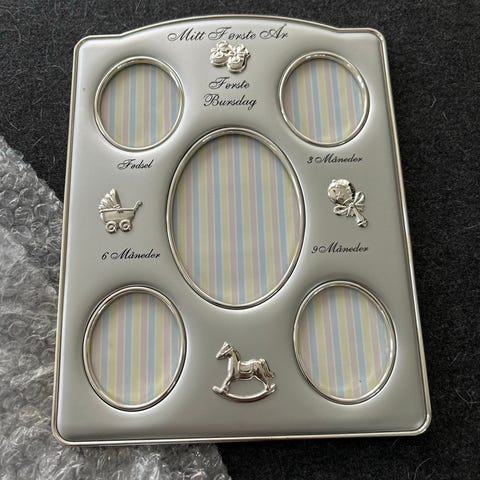 Perfekt som dåpsgave. Bilderamme for å sette inn ulike bilder. Den er helt ny med orginal eske. Kun tatt ut for å ta bilde.