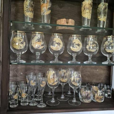 Iittala glass og lysestaker sett bestående av flere typer glass og små lysestaker i klart glassmateriale. Settet inkluderer ulike glassmodeller egnet for servering av drikke, samt små lysestaker med ribbet design. Produktet er laget av klart glass og passer til generell bruk i hjemmet.