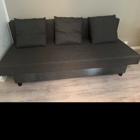 2 puter følger med, noen små flekker men teknisk greit. Brukt som stue sofa. Må hentes selv