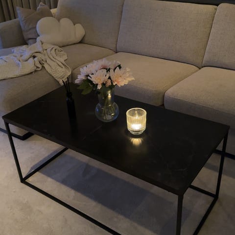 Fint bord med svart glasstop, noen små merker som kan enkelt males over. Mer info kommer på PM