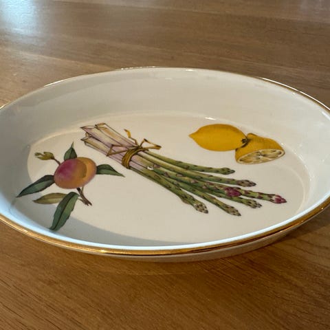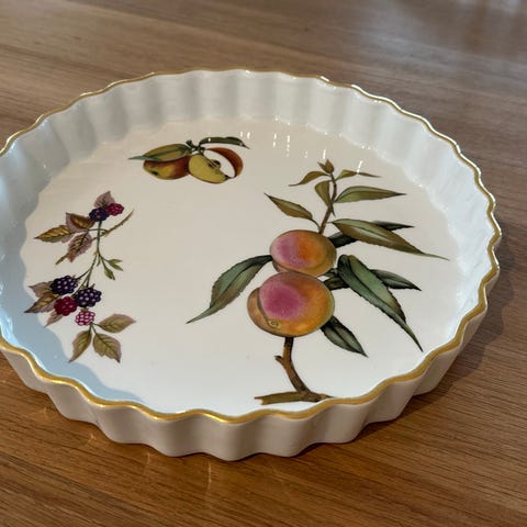 Vakker medium størrelse egg coddler fra Royal Worcester i fin stand med motiv av plomme og rips. Se bilder for størrelse. Originaleske og oppskrifter følger med.