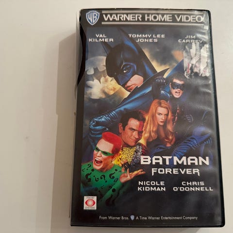 Selger en original VHS-utgave av den ikoniske filmen Batman (1989), regissert av Tim Burton.