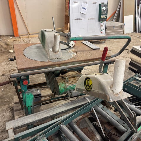 Sicma K12 2000 glidebordsag. Spenning 230V/380V, frekvens 50Hz. Maskinen er produsert i 1995 og har en solid konstruksjon egnet for presisjonskutting. Skal bort. Kom gjerne med bud.