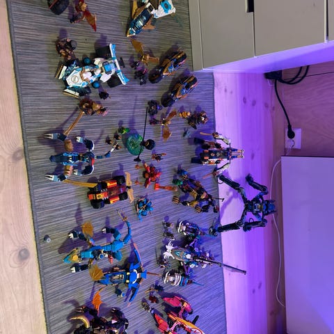 LEGO NINJAGO minifigurer assortert sett med ulike karakterer i forskjellige farger og antrekk. Settet inkluderer minifigurer med varierende tilbehør og detaljer, egnet for samling eller lek.